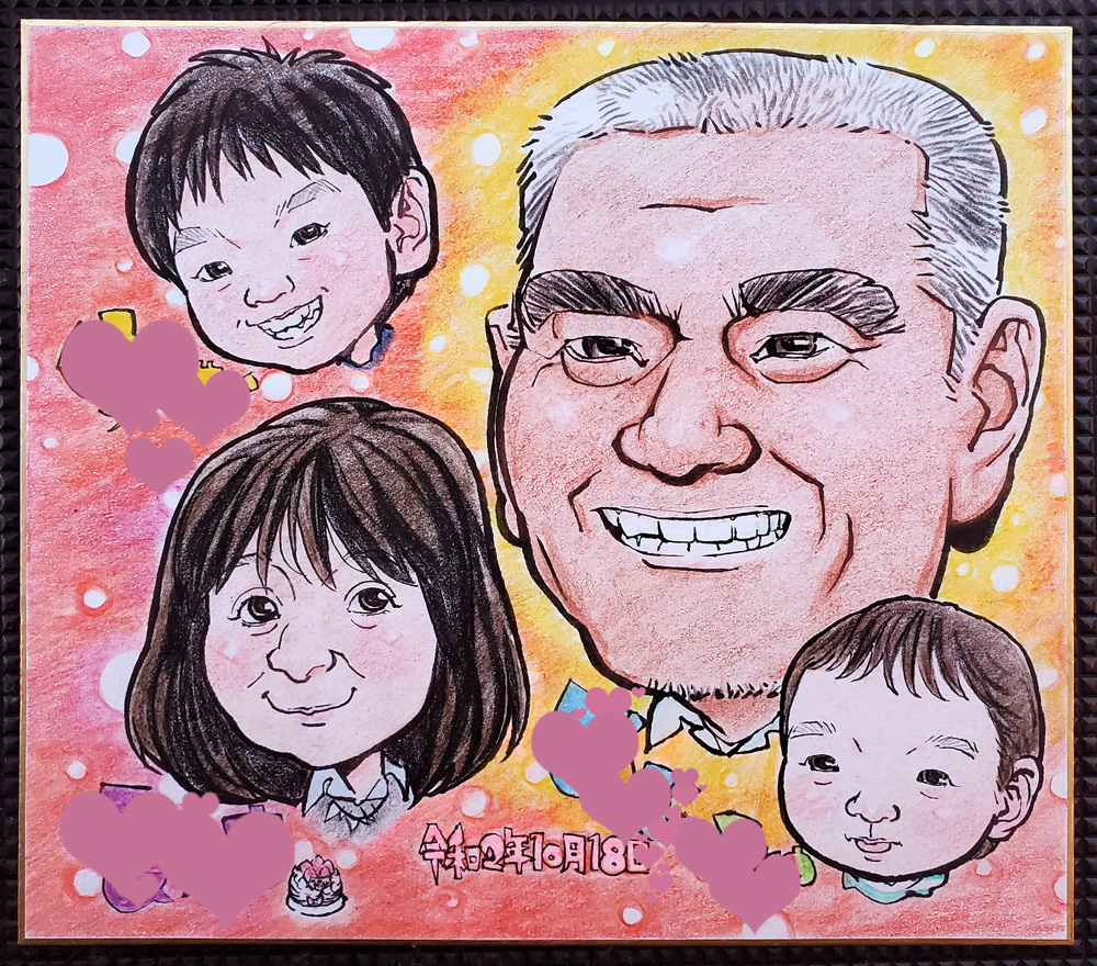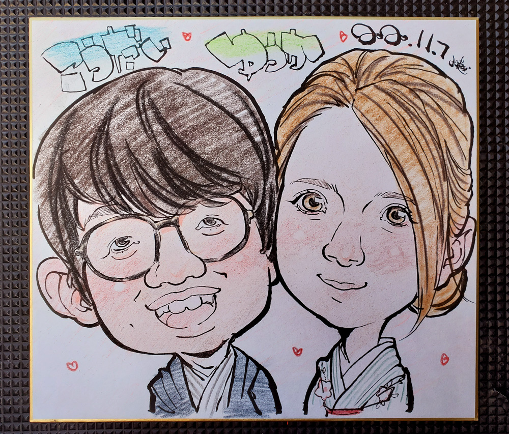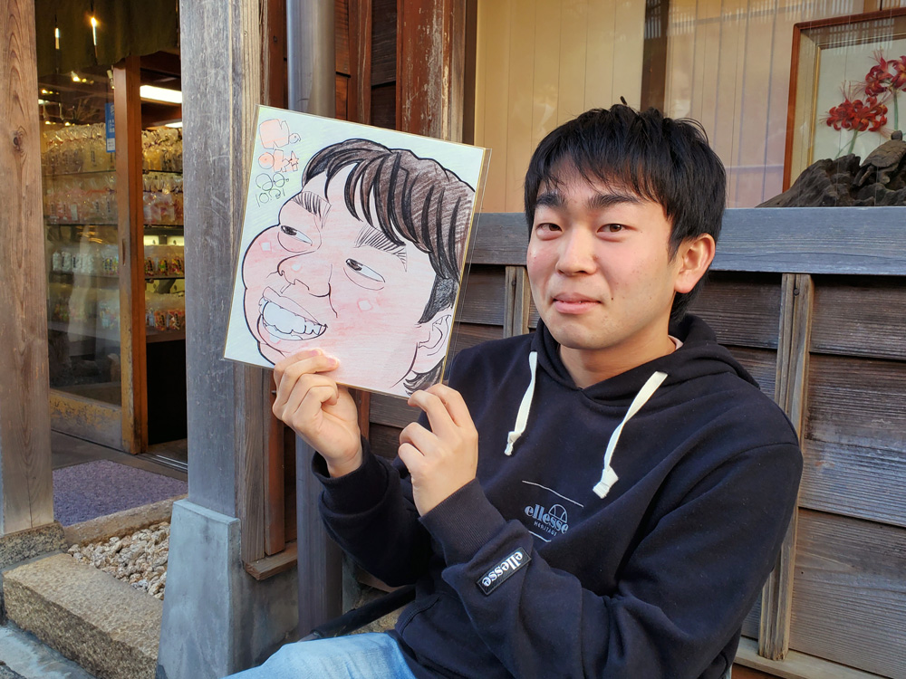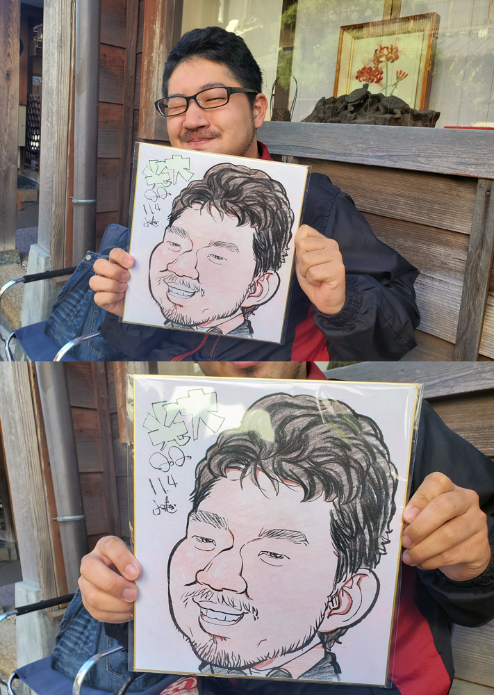似顔絵初のお客様。お寺の家で生まれたので、代々名前に「光」の字が入るそうです。