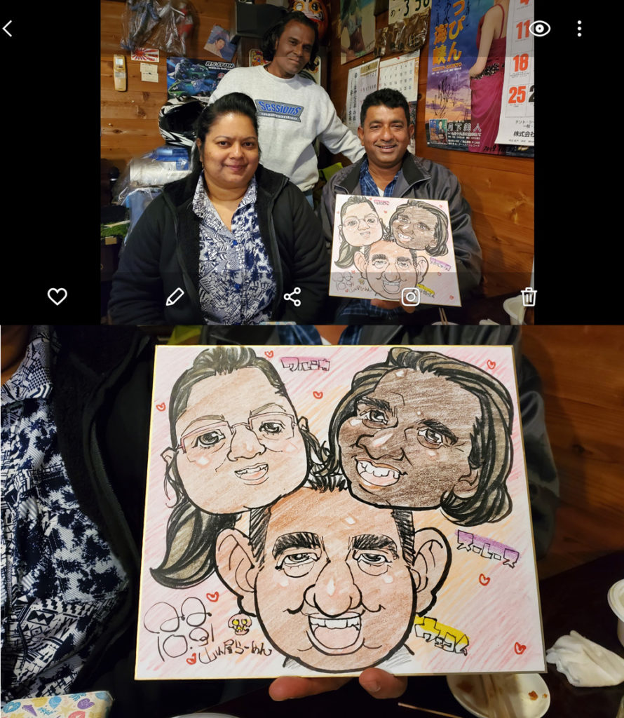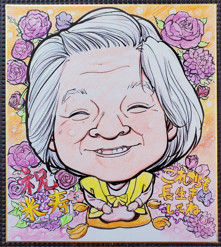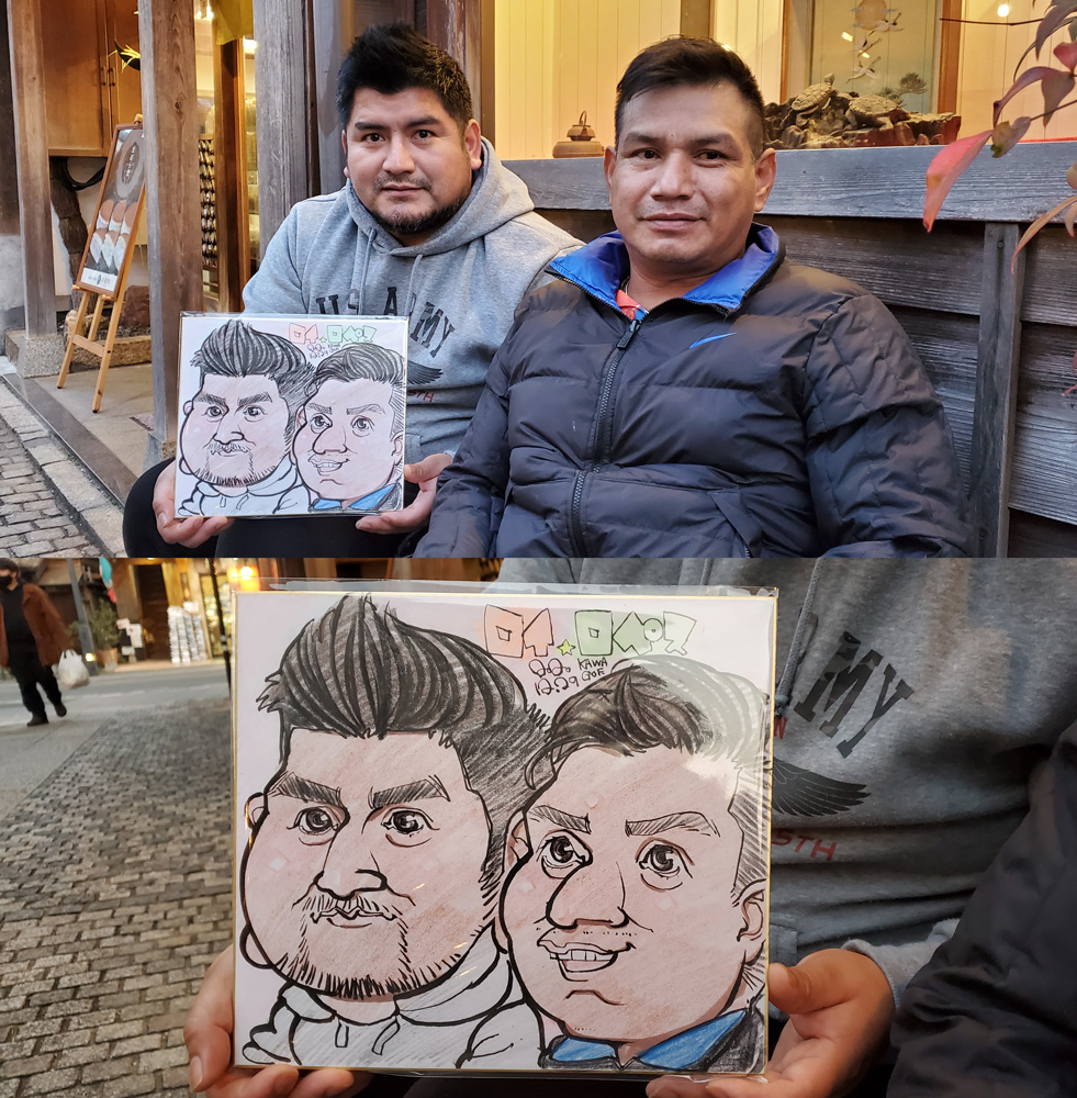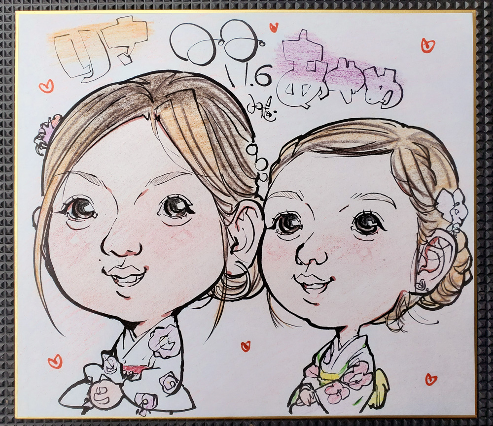 似顔絵初のお客様。お寺の家で生まれたので、代々名前に「光」の字が入るそうです。