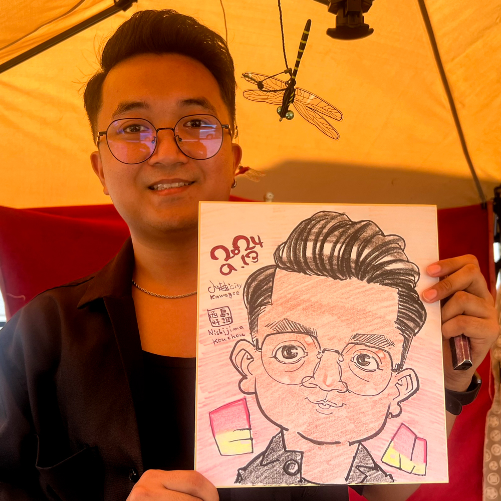 女性は考古学の学生さんで、日本のみならず韓国中国の歴史も詳しくていらっしゃいます。アジアの平和に貢献して欲しいという想いを込めて前歯を大きめにしてみました。彼氏さんに男性ブランコの浦井さんに似ていますねといったら、好きな芸人はラランドさんという事で変な雰囲気になってしまいました><。
