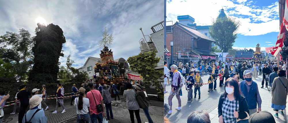 先月10月27,28日の川越祭り山車の巡航、菓子屋横丁に向かう路地と一番街の大通りです。