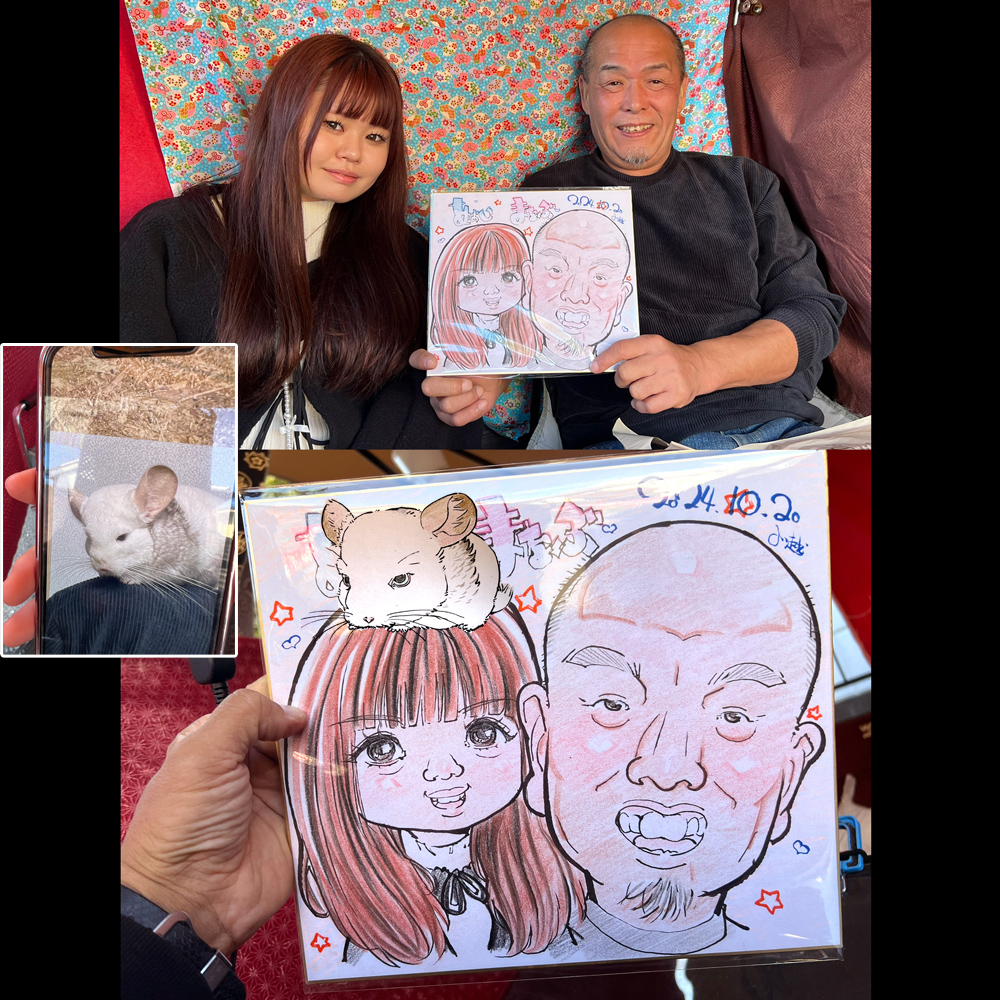 美容師さんの学校に通う娘さんと、柔道修行時代のお話を沢山してくださったお父様です(選手時代は185cmで130kg、同体重の人を担いで走る稽古をしていたとか)チンチラをお写真からお描きするリクエストを受けたのですが、ど忘れしてしまったためブログで描き入れました><